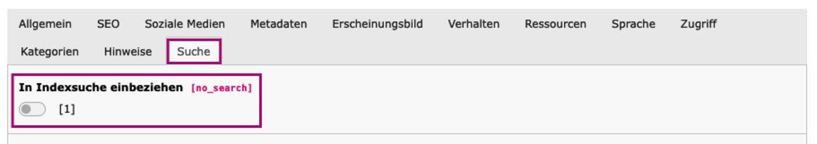 - Seitenindexierung anpassen, Seite aus Suche ausschließen